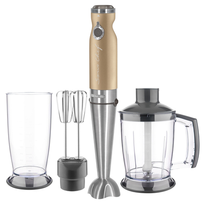 Ручний блендер з універсальними функціями що дозволять по максимуму заощадити час і місце на кухні. Потужність мотору в 1200 Вт забезпечує чудові результати, будь то змішування, збивання чи подрібнення. Крім того, у вас є вибір із дев’яти колірних варіацій, які створюють красиві металеві кольори.