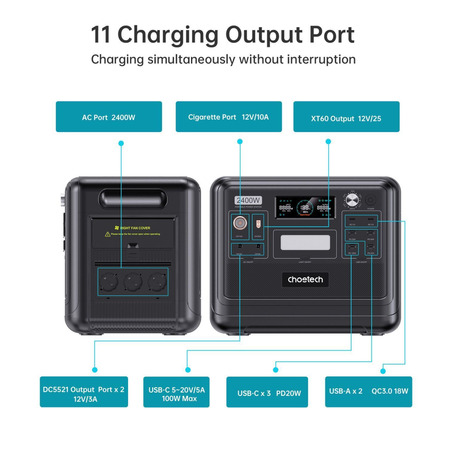 Зарядна станція CHOETECH BS008 - це зарядний пристрій потужністю 2400 Вт, який може заряджати акумулятори з ємністю до 2048 Вт·год. Використовується технологія LiFePO4 для зарядки батарей. LiFePO4 (літій-фосфатна батарея) - це тип літієвих акумуляторів, які відзначаються високими показниками безпеки та довговічності, ідеально підходять для використання в електромобілях та інших пристроях, де вимагається висока ефективність та надійність.