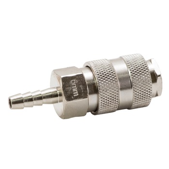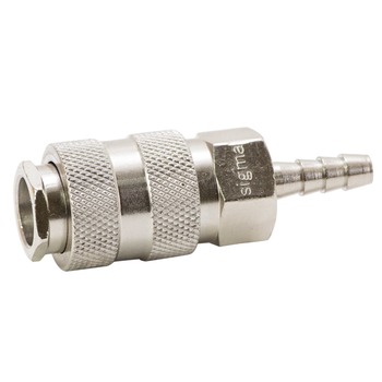 З'єднання швидкознімне для шланга 6мм SIGMA (7021171) та автоматичним клапаном, що перекриває канал подачі повітря. З'єднання призначене для установки на виході різних елементів пневмосистеми та створення автоматичного переривання подачі повітря. Корпус з нікельованої сталі виключає можливість появи корозії.