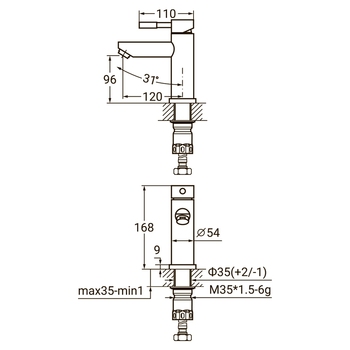 Змішувач KT Ø35 для раковини литий на гайці SS AQUATICA (KT-1A170P)