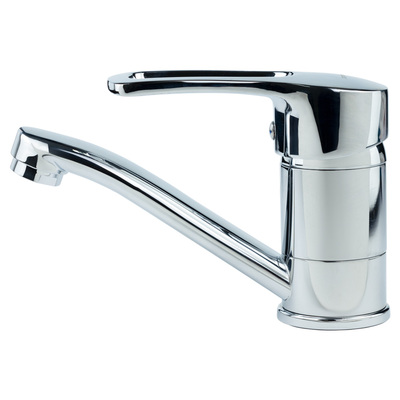 Модель MD-2B144C - це одноважільний змішувач для кухні з укороченим прямим виливом з можливістю обертання вліво-вправо. Підходить для мийок невеликих розмірів.