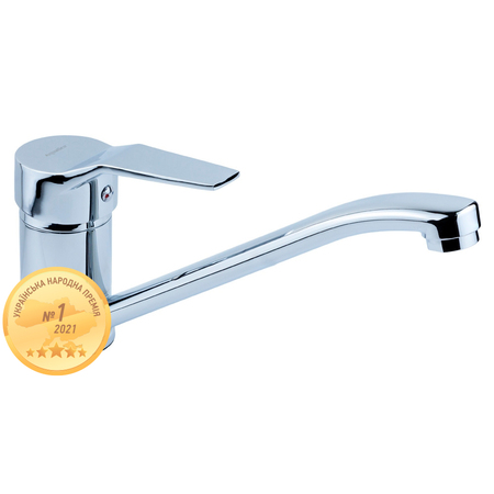 MJ-1B235C - це одноважільний змішувач для кухні з прямим поворотним гусаком довжиною 250 мм і важелем злегка зігнутої форми. Регулювання температури і потоку води проводиться плавно і практично безшумно завдяки роботі керамічного картриджа. Корпус покритий хромонікелевим напиленням, яке досить протирати тканиною або м'якою губкою.
