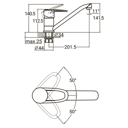 Кріплення на мийку здійснюється за допомогою гайки-корони. Для підключення до водопроводу передбачений гнучкий підвід.