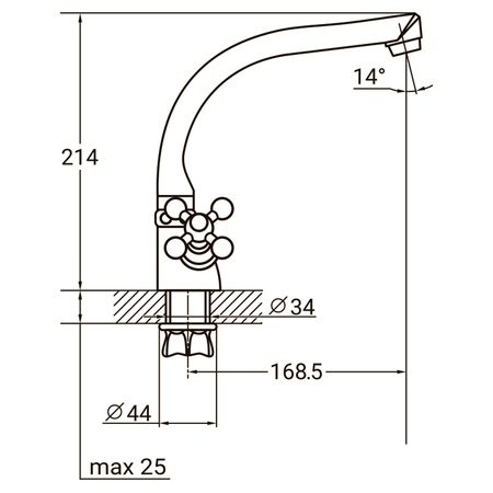 Змішувач для кухні PL-4B255C має класичний дизайн. Вилив - Г-подібний, поворотний на 360 градусів. Регулювання гарячої та холодної води здійснюється за допомогою двох вентилів, які працюють плавно і безшумно за рахунок встановлених латунних кран-букс з керамічними дисками. Для стабілізації потоку води передбачений аератор.
