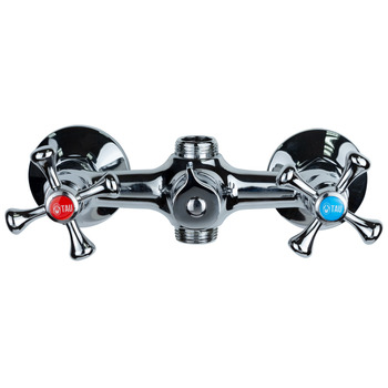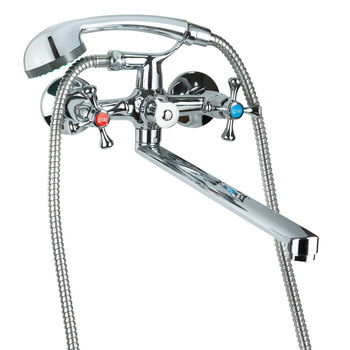 Модель TAU VN-2C260C - це двухвентильний змішувач для ванної з душем. Класичний дизайн, вентилі гарячої і холодної води - хрестоподібні, декоровані заглушками червоного і синього кольору. Дивертор вбудований, картріджний. Гусак прямий, має поворот на 360 °. Вилив має насадку-аератор, яка ефективно розподіляє потік води і перешкоджає попаданню в ванну дрібного сміття. Оскільки даний змішувач для ванної з довгим виливом, його вигідно встановити в санвузлі, в якому відсутній рукомийник.