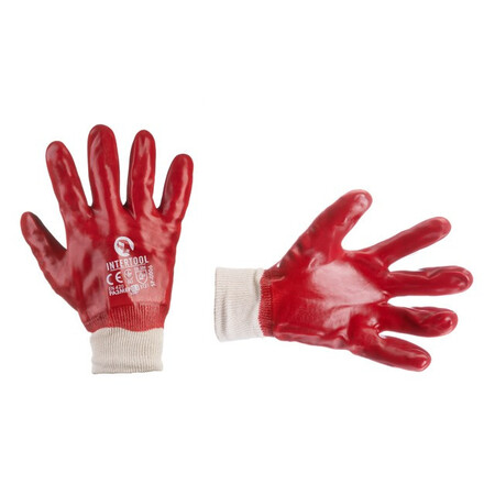 Рукавиці повністю покриті червоним PVC (полівінілхлоридом) для стійкого захисту рук від забруднень і рідких речовин, а також механічних пошкоджень. При цьому рукавиці достатньо гнучкі. Стійкі до стирання і мають тривалий строк експлуатації.