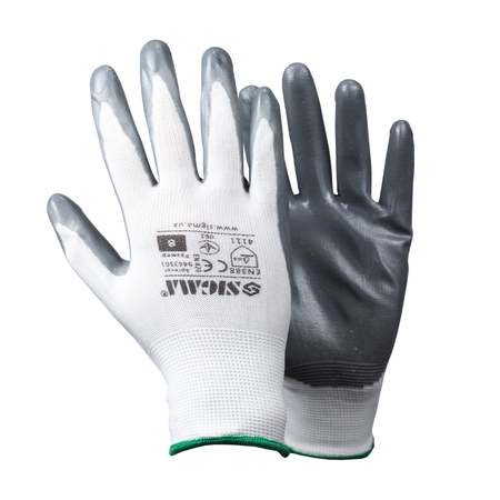 Рукавички трикотажні з частковим нітриловим покриттям р8 (сірі манжет) SIGMA (9443501) для захисту від механічних впливів, а так само є прекрасною перешкодою для жиру і масла.