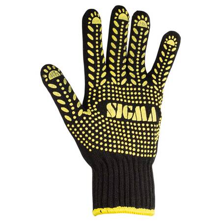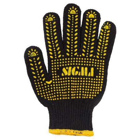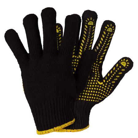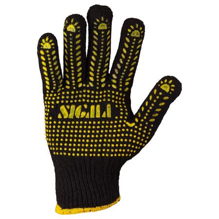 Рукавички трикотажні з крапковим ПВХ покриттям р10 Універсал (чорні) SIGMA (9442651) призначені для захисту рук від механічних пошкоджень і різних виробничих забруднень. Застосовуються рукавички при вантажно-розвантажувальних роботах, збірних роботах і упаковці.