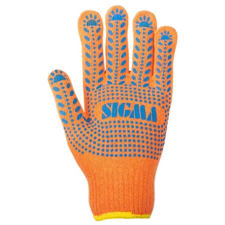 Рукавички трикотажні з крапковим ПВХ покриттям р10 Універсал (помаранчеві) КРАТНО 12 парам SIGMA (9442671) призначені для захисту рук від механічних пошкоджень і різних виробничих забруднень. Застосовуються рукавички при вантажно-розвантажувальних роботах, збірних роботах і упаковці.