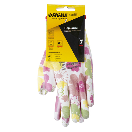 Рукавички з ПУ покриттям (білі манжет) SIGMA (9446361) для захисту рук від механічних впливів.