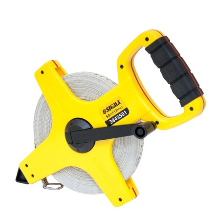 Рулетка 50м×13мм геодезична (скловолокно) SIGMA (3843501) призначена для довгомірних вимірювань. Основна фішка цього товару - підвищена міцність скловолокна, яка забезпечує тривалу та надійну роботу.