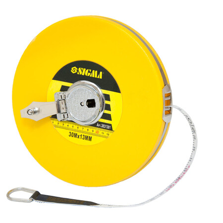 Рулетка скловолокно 30м×13мм SIGMA (3831301) - особливістю скловолоконних рулеток є можливість вимірювання великих відстаней за рахунок збільшеної міцності стрічки з низьким коефіцієнтом розтягування.