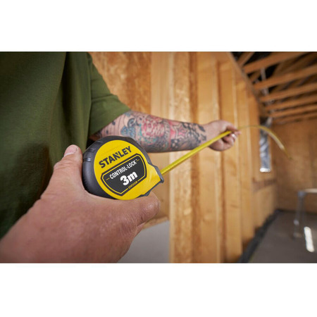 ruletka vimiryuvalna control-lock dovzhinoyu 3 m, shirinoyu 19 mm, v obgumovanomu korpusi, z podviynoyu shkaloyu stanley stht37230-0, stht37230-0, stanley, ruletki