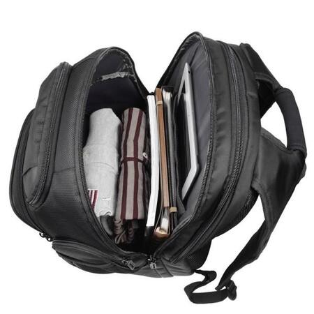 Рюкзак для ноутбука до 17 "включно. Головне відділення включає в себе: спеціальну кишеню для ноутбука з фіксуючою стрічкою на липучці, 2 сітчастих кишені для мишки і блоку живлення; 1 кишеню для аудіо з виходом для навушників; Відділення для документів і книг розміром А4 ( вільно поміститься пара журналів і до 3 книжок). Відділення органайзер: кишеня, відсіки для авторучок / олівців, кишеня для дріб"язку, відсік на змійці, знімний карабін з кільцем для ключів. з боків є по 2 кишені на змійках і по 2 сітчастих кишені . Є так само стяжки для зменшення обсягу рюкзака (при неповному заповненні).