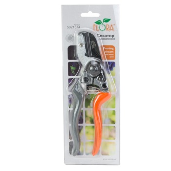Секатор з наковаленкою 200мм FLORA (5021374) має спеціальну конструкцію, завдяки якій відмінно рубає сухі та тверді гілки діаметром до 20мм.