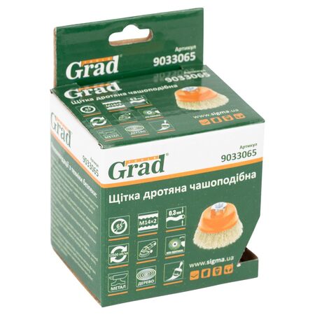 Щітка дротяна чашоподібна Ø65мм М14×2 мм (латуньована) GRAD (9033065)