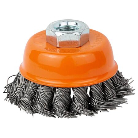 Чашоподібні щітки рекомендують для обробки великих ділянок, зварних швів та листового металу.