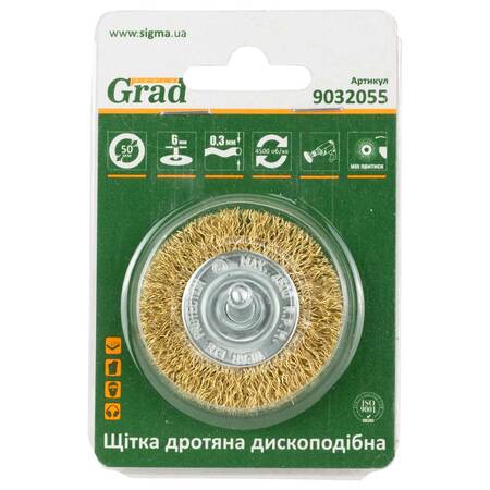 Щітка дротяна дископодібна Ø50мм хвостовик Ø6мм (латуньована) GRAD (9032055)