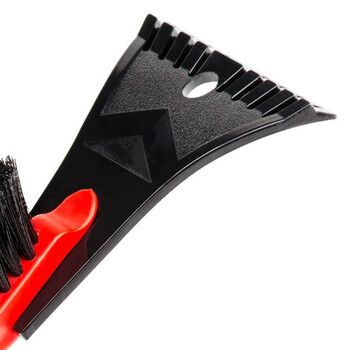 Щітка зі шкребком виконана з міцного морозостійкого пластику, не навантажує спину та руки. Має посилену конструкцію з ребрами жорсткості для більшої надійності та довговічності. Оптимальне розташування робочих інструментів на одному боці дозволяє швидко переключатися від змітання снігу до видалення крижаних товстих кірок. Місце хвату з м'якою накладкою не ковзає у долоні та забезпечує комфортну роботу на морозі.