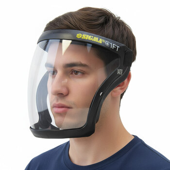 - Повний захист обличчя (від брів до підборіддя) від бризок, уламків, пилу