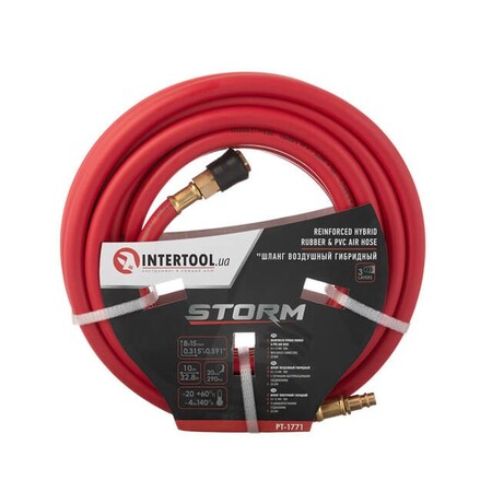 shlang gibridniy, profesiyniy, 20 atm, 815mm, 10m z latunnimi shvidkoroziemnimi ziednannyami, storm intertool pt-1771, pt-1771, intertool, shlangi pnevmatichni