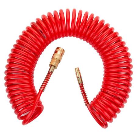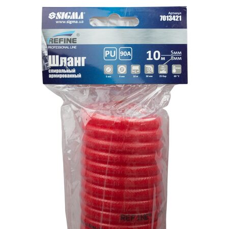 Шланг спіральний поліуретановий (PU) армований 10м 5.5×8мм REFINE (7013421) використовується для передачі повітря в пневматичних системах стандартного тиску. Має хорошу стійкість до механічних впливів (перегини, здавлювання, скручування) і швидко відновлює свою первинну форму після зняття механічного впливу. Шланг не схильний до гідролізу і має хорошу стійкість до впливу озону і мікроорганізмів.