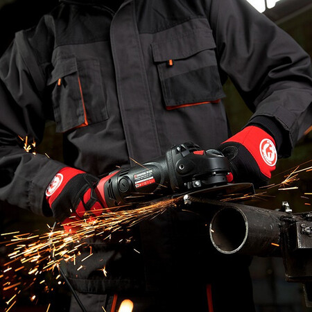 Завдяки поворотній прогумованій рукоятці болгарка дуже комфортно лежить в руці і відмінно підходить для поздовжного шліфування. Міцний металевий захисний кожух встановлюється з будь-якої сторони і захищає вас від сміття, іскор і уламків. Надійний еластичний прогумований дріт не перегинається і не дубіє на морозі.