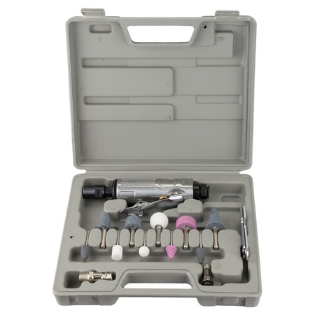 Шлифмашинка пряма пневматична з аксесуарами в кейсі 25000об/хв SIGMA (6732851) підходить для шліфування, гравіювання, фрезерування, полірування та інших робіт. При оснащенні відповідними насадками можлива обробка виробів зі сталі, скла, кераміки та пластику. Інструмент працює на стисненому повітрі, що забезпечує високий робочий ресурс і стійкість до перевантажень.