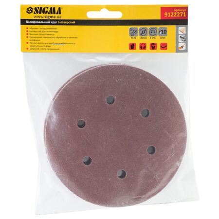 shlifuvalniy krug 6 otvoriv o150mm p120 10sht sigma 9122271 ,