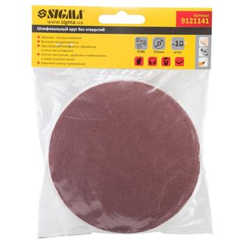 Шліфувальний круг без отворів Ø125мм P180 (10шт) SIGMA (9121141) призначений для сухого високошвидкісного шліфування. Невеликий діаметр круга дозволяє проводити обробку в важкодоступних місцях, робить його неперевершеним по легкості роботи і точності обробки. За властивостями є багатофункціональним абразивом. В основному застосовується в автомобільній промисловості, деревообробці і металообробці.