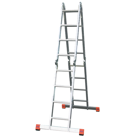 Чотирисекційні універсальні алюмінієві шарнірні сходи трансформер можуть застосовуватися як двосторонні драбини, як звичайні приставні сходи і як робоча платформа. Зручна та практична при будівельних оздоблювальних роботах. Легка у використанні та транспортуванні. Без праці поміщається в багажник легкового автомобіля. Висота драбини: 2,3 м; Довжина приставних сходів: 4,7 м; Робоча висота (мах): 5,75 м; Вага сходів: 15,5 кг