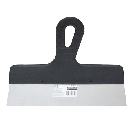 Шпатель стандарт (нержавіючий) 300мм GRAD (8320655) яке має змінну товщину для додаткової гнучкості та пружності. Інструмент оснащений пластиковою ручкою. Шпатель застосовується для оштукатурювання зовнішніх та внутрішніх стін, стель, для нанесення шпаклівок, мастик і густих клейових сумішей.
