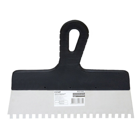 Шпатель зубчастий (нержавіючий) 250мм 6×6мм GRAD (8321365) яке має змінну товщину для додаткової гнучкості та пружності. Інструмент оснащений пластиковою ручкою. Шпатель застосовується для оштукатурювання зовнішніх та внутрішніх стін, стель, для нанесення шпаклівок, мастик і густих клейових сумішей.
