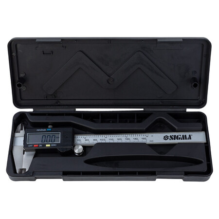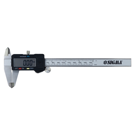 Штангенциркуль цифровий 150мм точність ±0.02мм (пенал) SIGMA (3923021) - універсальний вимірювальний прилад для визначення лінійних розмірів деталей з установленою точністю. З його допомогою можна проводити вимірювання зовнішніх і внутрішніх розмірів деталей, а також глибини отворів за умови наявності висувної штанги.