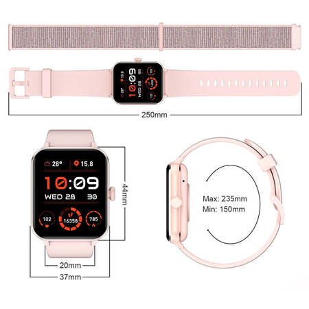 Акселерометр, 25 спортивних режимів, мікрофон, вібромотор, керування камерою та музикою, регулювання яскравості, захист за стандартам IP68, магнітна зарядка, функція гучного зв'язку, контроль денної активності, трекінг сну, пульсометр, рівень кисню у кров