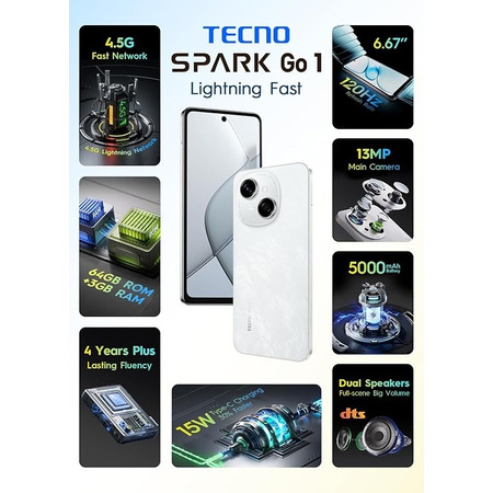 Spark GO 1 вражає величезним обсягом пам'яті, що забезпечує комфортне користування смартфоном навіть для найвибагливіших завдань. Пристрій дозволяє зберігати велику кількість фотографій, відео, програм та інших важливих даних. Об'єму пам'яті вистачить для всіх спогадів та повсякденних потреб без необхідності постійно видаляти файли для звільнення місця.
