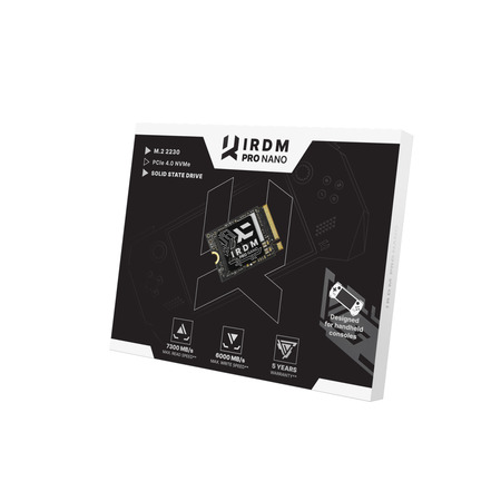 Must-have для мобільних геймерів Твердотільний накопичувач IRDM PRO NANO SSD - це відповідь на ринок портативних консолей, що динамічно зростає. Геймери все частіше і охоче звертаються до таких пристроїв - завдяки їм вони можуть підкорювати рівні улюблених ігор будь-де і будь-коли. Екстремальна продуктивність IRDM PRO NANO використовує інтерфейс PCIe NVMe Gen. 4 х4. Це один із найефективніших інтерфейсів, доступних на ринку, що гарантує швидкість передачі даних вище за середній. Неперевершена та вражаюча послідовна швидкість до 7300 МБ/с на читання та 6000 МБ/с на запис максимально скорочує час копіювання файлів та дозволяє швидше встановлювати ігри. З IRDM PRO NANO ігри будуть завантажуватись ще швидше, а робота додатків буде дуже плавною та швидкою. Безпека даних на найвищому рівні IRDM PRO NANO складається з найкращих брендових компонентів. Використовуваний контролер забезпечує надійну роботу накопичувача. Важливу роль також грають інші технології та рішення, такі як ECC або теплове дроселювання. Також важливим є високий рівень TBW, що досягає 1 200 ТБ. Це забезпечує довговічність носія, а також гарантує знижену вразливість накопичувача до збоїв під час читання та запису. Універсальне застосування В епоху прагнення до менших і компактних пристроїв, IRDM PRO NANO, крім портативних консолей, також виявиться успішним в ноутбуках і ультрабуках, які через свої невеликі розміри здатні вмістити всього 2230 накопичувачів. У ноутбуках IRDM PRO NANO може бути звичайним методом суттєвого розширення пам'яті. Новий накопичувач IRDM також знайде застосування у спеціальному відсіку SSD, що дозволяє використовувати його як зовнішній диск. Така практична та універсальна програма робить носій безцінним інструментом для тих, хто цінує мобільність без необхідності жертвувати високою продуктивністю зберігання даних. Простір для всіх твоїх ігор! Місткість, в якій доступний IRDM PRO NANO, задовольнять потреби досвідчених геймерів, професіоналів, фотографів та всіх користувачів, яким потрібен накопичувач з великою ємністю, відмінними технічними характеристиками та мініатюрним розміром.