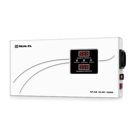 Стабілізатор напруги REAL-EL STAB SLIM-1000 призначений для забезпечення якісним і стабільним електроживленням різних споживачів, захисту пристроїв-споживачів від неприпустимих відхилень напруги, високочастотних і імпульсних перешкод.
