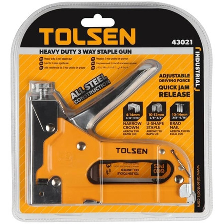 Степлер Tolsen, 4-14мм, тип скоб J, тримач металевий, регулювання забивання скоби (43021)
