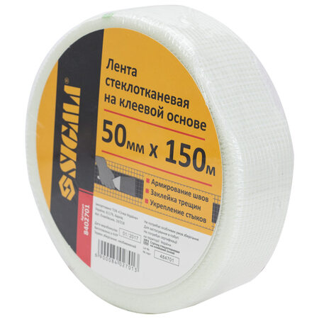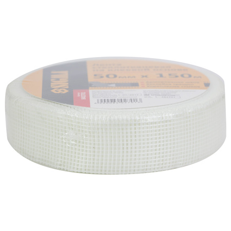 Стрічка склотканинна на клейовій основі 50мм×150м SIGMA (8402701) використовується для запобігання утворення тріщин і зміцнення поверхонь.