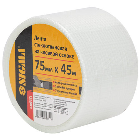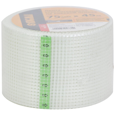 Стрічка склотканинна на клейовій основі 75мм×45м SIGMA (8402731) використовується для запобігання утворення тріщин і зміцнення поверхонь.