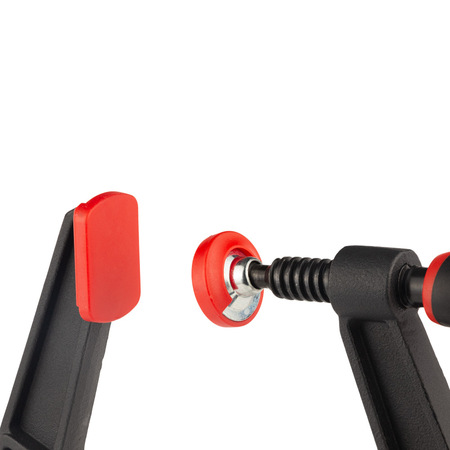 Інструмент складається з направляючої, на якій, з одного боку, намертво закріплена нерухома губка, а на другий протягнуто рухливий елемент з гвинтом для піджима. Завдяки тому, що рамка дозволяє проводити регулювання не тільки за допомогою гвинта, а й змінювати ширину захвату скоби, можна працювати з деталями різної товщини. На вершині губки і на лапці гвинта є накладки, які запобігають появі слідів на м'яких матеріалах.