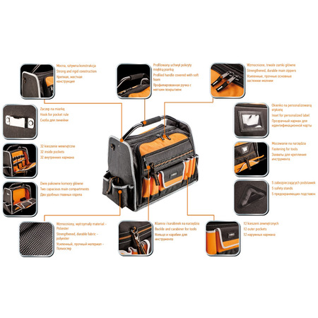 Сумка для інструментів Neo Tools моделі 84-301 - це практичний та зручний аксесуар, який призначений для зберігання та перенесення інструментів. Основні характеристики цієї сумки включають: