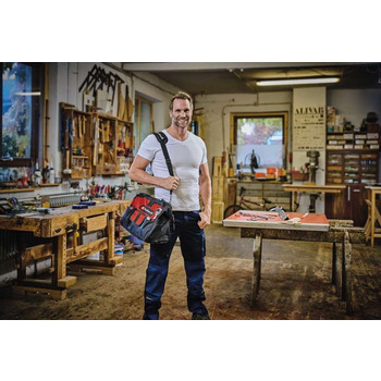 Вона має зручні ручки для перенесення, а також надійну конструкцію, яка дозволяє зберігати інструменти та аксесуари організовано і безпечно. Сумка Einhell Bag 45/29 є прекрасним доповненням до вашого інструменту і може бути корисною для зберігання та транспортування вашого обладнання.