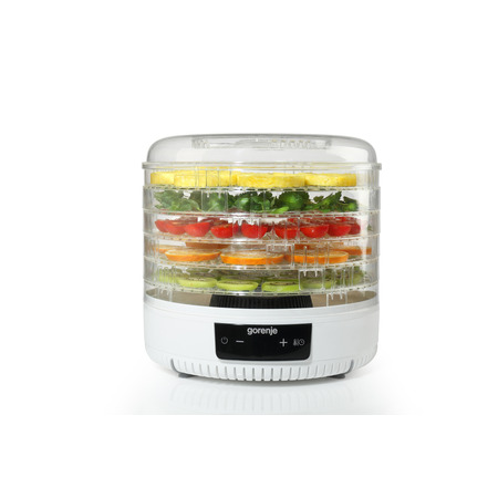 Зручна і практична сушарка Gorenje FDK500GCW має відмінний функціонал, завдяки чому чудово справляється з поставленими перед нею завданнями. Дана модель справляється із сушінням фруктів, овочів, м'яса, риби, грибів та інших продуктів. Варто зауважити, що завдяки конвективній системі висушені в сушарці продукти зберігають свої корисні якості та властивості. Такий побутовий прилад має просте та зрозуміле електронне керування, за допомогою якого Ви зможете встановити потрібний час для сушіння в межах 0,5 год-19,5 год та температурний режим 35-70 градусів. Перевагою сушарки Gorenje FDK500GCW є те, що секції можна регулювати по висоті, а висушування відбувається рівномірно абсолютно на всіх рівнях. До того ж, Ви можете одразу сушити велику кількість різноманітних продуктів. Після закінчення роботи прилад сам автоматично вимикається, а прозорість секцій дозволяє спостерігати процес висушування.