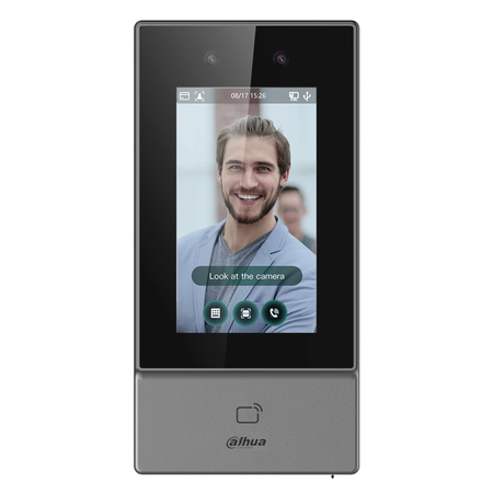 Дисплей 4.3 дюйми, сенсорний;Подвійна камера 2МП;Розблокування за розпізнаванням обличчя та картою доступу, паролем, QR кодом;Картки доступу Mifare;6000 облич\ 10 000 карт доступу\ 300 000 подій;Антипасбек; тайм-аут датчика дверей; підробка картки; виявлення лицьової маски та виявлення захисного шолома; управління відвідуваністю та експорт записів відвідуваності;Wiegand, RS485;Клас захисту IP65