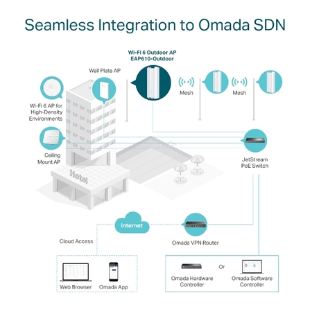 Технологія Omada Mesh: забезпечує Wi-Fi підключення між точками доступу для збільшення радіусу їхньої дії та зручного розгортання
