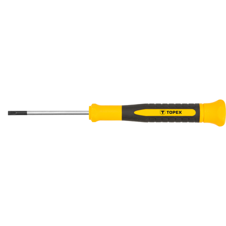 Topex 39D772 - це прецизійна шліцьова викрутка з розміром 3,0 х 50 мм. Цей інструмент призначений для викручування або закручування винтів з різьбленням з шліцем шириною 3,0 мм. Розмір 50 мм вказує на довжину викрутки.