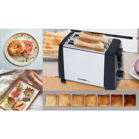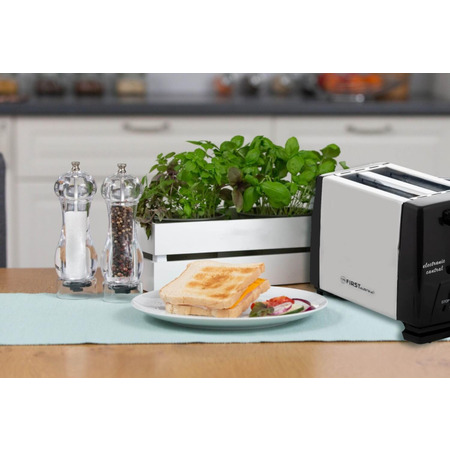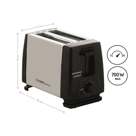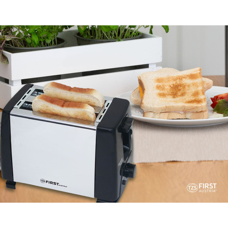 На бічній частині тостера First FA 5366 встановлено пружинний важіль включення. При його опусканні пружина стискається, і тостер приступає до роботи. Тости обсмажуються під впливом інфрачервоного випромінювання - безконтактно,не торкаючись до жарочної поверхні. Воно виробляється високоміцною і довговічною спіраллю з ніхромового проводу. Пружина утримується невеликим електромагнітом до моменту виконання встановленої програми. Після його досягнення, електромагніт вимикається, і тости "вистрибують" назовні.