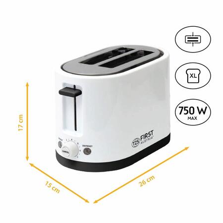 First FA-5368-3 виготовлений із матеріалів, безпечних у використанні, а також службовців досить довго в експлуатації. Корпус приладу виготовлений із високоякісного пластику, а стандартне поєднання білого та чорного кольору є класикою для будь-якого виду кухні. Щоб забезпечити зручніший спосіб користування цим пристроєм, тостер оснащений піддоном для крихт, який легко знімається. Цінник тостера First FA-5368-3 приємно здивує вас, як користувача в економічному та споживчому планах. Серед інших доступних функцій прилад має підставку для підігріву.